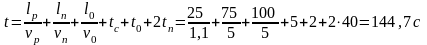 Т = 2Lпр(n1/v1 + n2/v2 + n3/v3 +…)+ 2 nt1 = 2.100.4/66,7 + 2.4.1 = 20мин