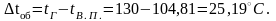 Параметры греющего пара: tГ=130°С; Рг=0,25МПа; hг=2720,7кДж/кг; температура насыщения tгнас=127,43°С; hконд=535,4кДж/кг.