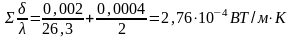 Примем, что суммарное термическое сопротивление равно термическому сопротивлению стенки