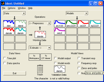 Пакет System Identification Toolbox содержит средства для создания математических моделей линейных динамических объектов (систем) на основе наблюдаемых входных/выходных данных. Он имеет удобный графический интерфейс, позволяющий организовывать данные и создавать модели. Методы идентификации, входящие в пакет применимы для решения широкого класса задач – от проектирования систем управления и обработки сигналов до анализа временных рядов.