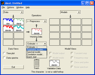 Обработка массива данных с помощью пакета System Identification Toolbox предполагает следующие этапы: