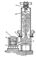 Сырьем для производства воздушной извести служат плотные известняки, ракушечники, мел, доломитизированные известняки при условии, что содержание глинистых примесей в них не превышает 6%. Сырье обжигают при температуре 1000 ... 1200°С до полного удаления углекислого газа. Обжиг известняка производится в печах различных конструкций: шахтных, вращающихся, с «кипящим» слоем, в циклонно-вихревых печах во взвешенном состоянии, а также на движущихся агломерационных решетках. Распространен обжиг в шахтных печах, которые надежны в эксплуатации, позволяют использовать местные виды топлива и требуют меньшего его расхода. (рис. 2.3.)