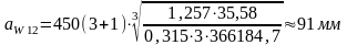 где Ка=450-для косозубых колес, Мпа1/3; ba-коэффициент ширины в зависимости от положения колес относительно опор (при симметричном ba=0,315); KH- коэффициент нагрузки в расчетах на контактную прочность.