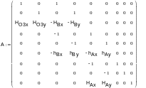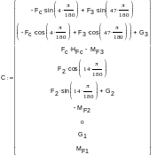Далее составляем матрицы коэффициентов и неизвестных реакций для решения этой системы уравнений в программе MathCAD и решаем, используя для решения функцию lsolve.