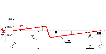 Тогда чтобы найти полную кинетическую энергию механизма нужно перенести ось абсцисс графика полной работы вниз на ординату Тн. Однако конкретное значение Тн пока неизвестно, поэтому новое положение оси абсцисс покажем на графике условно (рис.4):