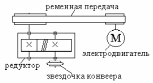 Спроектировать привод к конвейеру по схеме (рис. 1). Мощность на ведомом валу редуктора P3 = 3 кВт и W3 = 2,3 рад/c вращения этого вала.