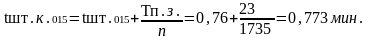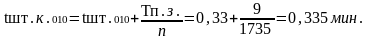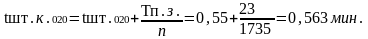 В условиях серийного производства основой для организационно-экономических расчётов является норма штучно-калькуляционного времени. Норму штучно-калькуляционного времени (tшт.к) по каждой операции технологического процесса обработки детали определяют по формуле: