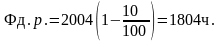 Действительный годовой фонд времени работы одного рабочего (Фд.р.) определяют исходя из номинального годового фонда времени ( Фн) и процента планируемых невыходов на работу ( ) по уважительным причинам (болезни, выполнение общественных и государственных обязанностей) [1]. Расчёт выполняется по формуле:
