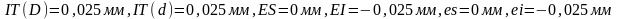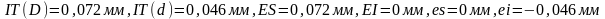 | Размер, мм | IT (D), IT (d), мкм | ES, es, мкм | EI, ei, мкм | Dmin, dmin, мм | Dmax, dmax, мкм |