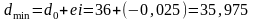 | Ø36h6 | 25 | 0 | -25 | 35,975 | 36 |