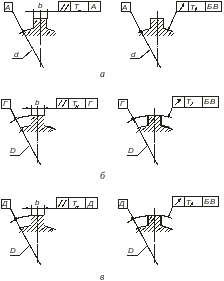 При назначении допусков формы и расположения элементов шлицевых соединений можно руководствоваться следующими рекомендациями (рис.9).