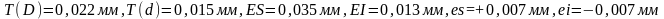 Smin = EI - es = 0,013-0,007=0.006мм.