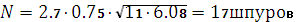 Таким образом, общее число врубовых и отбойных шпуров определяется так:
