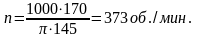 де D - діаметр оброблюваної поверхні, D = 145 мм.
