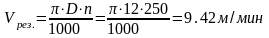 Уточнення частоти обертання по паспорті верстата: n = 250 про/хв.