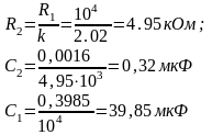 Произведём расчёт сопротивлений и ёмкости , а так же коэффициента усиления дополнительного усилителя . Расчёт устройства производится по соотношениям :