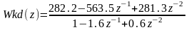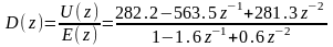 >> W=filt([282.2,-563.5,281.3],[1,-1.6,0.6],0.0008)