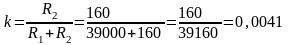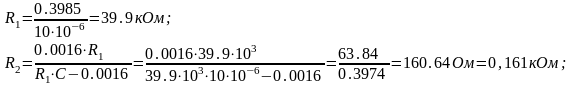 По таблице номиналов выбираем близкие по значению резисторы модели С1-1 R1=39кОм , R2=160Ом