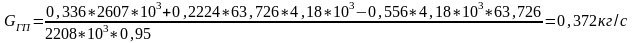Gв=0,3336*(2607-4,19*59,7)*103/[4,19*(59,7-5-12)]=4,43 кг/с