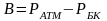 Где РАТМ=1,013*105 Па, РБК= 0,2*105 Па