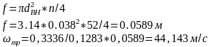 ωП=0,3336/(0,1283*0,785*12)= 3,312 м/с