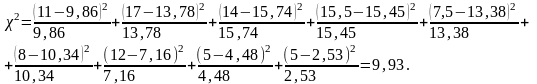 Критерий Пирсона вычисляют по зависимости:
