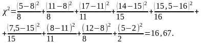 | Опытная частота | 5 | 11 | 17 | 14 | 15,5 | 7,5 | 8 | 12 | ||