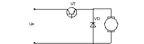Когда транзистор VT отперт от источника питания потребляется энергия. При запирании транзистора VT ток нагрузки за счет Э.Д.С. самоиндукции сохраняет свое прежнее направление, замыкаясь через обратный диод VD. В связи с тем что источник питания, как правило, обладает индуктивностью, для защиты транзистора от перенапряжений, возникающих при разрывах цепи питания, на входе ИП ставится фильтр нижних частот, выходным звеном которого является конденсатор Свх.