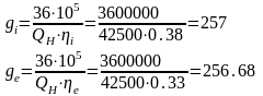 Индикаторный и удельный расходы топлива подсчитываются по формулам: