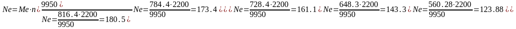 Соответственно вычисляем значения Ме определяются эффективные мощности Nе по формуле: