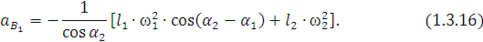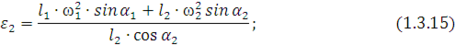 Действительные значения углового ускорения шатуна 2 и линейного ускорения точки