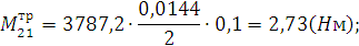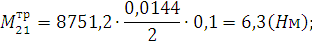 Используя значения найденных в силовом расчете реакций в КП для положений 2, 5, 21, 24, определяются значения моментов сил трения и сил трения в КП для этих положений:
