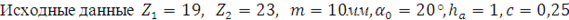 При проведении геометрического расчета взято во внимание, что зубчатые колеса эвольвентные цилиндрические прямозубые, нарезаны стандартным реечным инструментом.