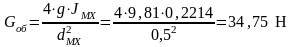 вес маховика с ободом и спицами равен GMX = 1,3∙Gоб = 1,3∙34,75 = 45,18 Н.