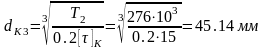 У промежуточного вала III расчетом на кручение определяю диаметр опасного сечения под шестерней z3 по пониженным допускаемым напряжениям