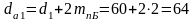 da3=d3+2mnT=115+2∙2,5=120 мм;