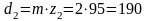 da4=d4 - 2mnT=365-2∙2,5=360 мм.