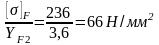 Определю коэффициент нагрузки КF=KFβ∙KFγ=1.37∙1.15=1.57;