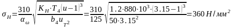 . Допускаемое контактное напряжение для материала колеса такое же, как в тихоходной ступени: