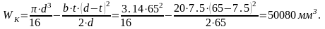где W – для сечения со шпоночным пазом, момент сопротивления: