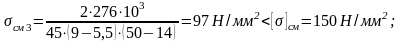 – наибольшее напряжение изгиба в опасном сечении пальца, Н/мм2.