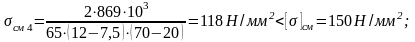 Для вала d= 65 мм по ГОСТ 8788 ширина паза b= 20 мм; глубина t= 7.5 мм, тогда