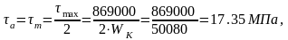 Касательные напряжения от нулевого цикла для сечения под зубчатым колесом: