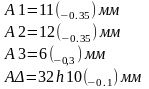 А1=11(-0,43)мм, А2=12(-0,43)мм, А3=6(-0,3)мм, АΔ=32мм
