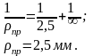 где R1, R2 – радиусы кривизны в точке контакта, R1=2,5 мм, R2=