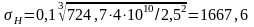 [σН] – допускаемое напряжение, для закаленной стали твердостью 60HRC при начальном контакте в точке [σН] = 2000МПа.