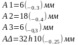 А1=6(-0,3)мм, А2=18(-0,43)мм, А3=6(-0,3)мм, АΔ=30мм