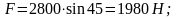 где Fз – сила закрепления, Fз = 2800Н; α =45˚,