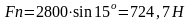 где Fш – усилие на штоке, Fш = 2800Н, α =15˚,