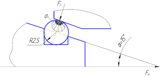 Закрепление корпуса патрона на станке осуществляется при движении штока вправо, при этом сухарик скользит по конусному, а затем цилиндрическому участку постепенно прижимаясь к корпусу, сухарик при этом испытывает напряжения смятия (размеры площади контакта сопоставимы с размерами контактирующих тел).
